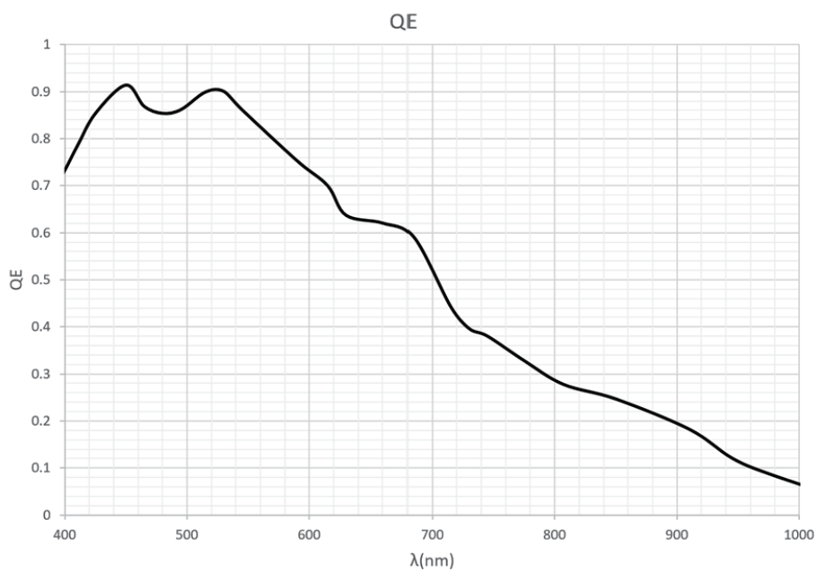 | 讀出噪聲 | 高靈敏度模式: 3.5e- / 標準模式: 11e- | |